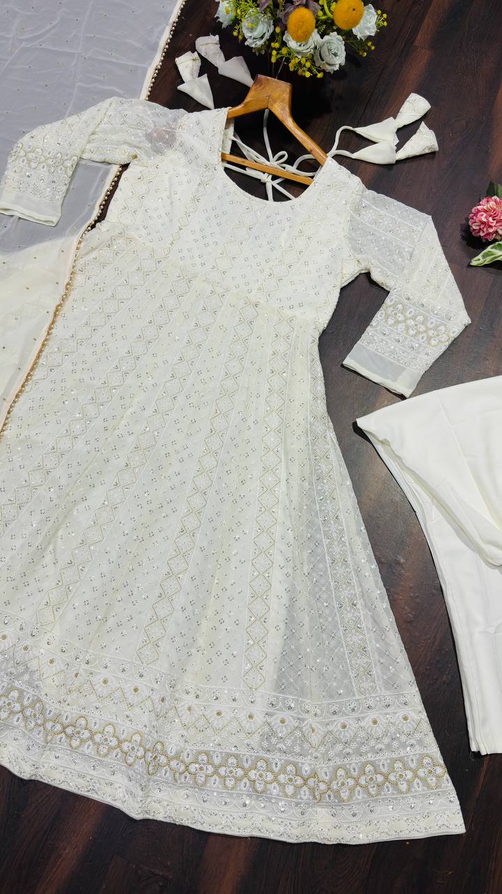 Arbeitsanzug aus schwerer Vichitra-Seide mit Stickereien