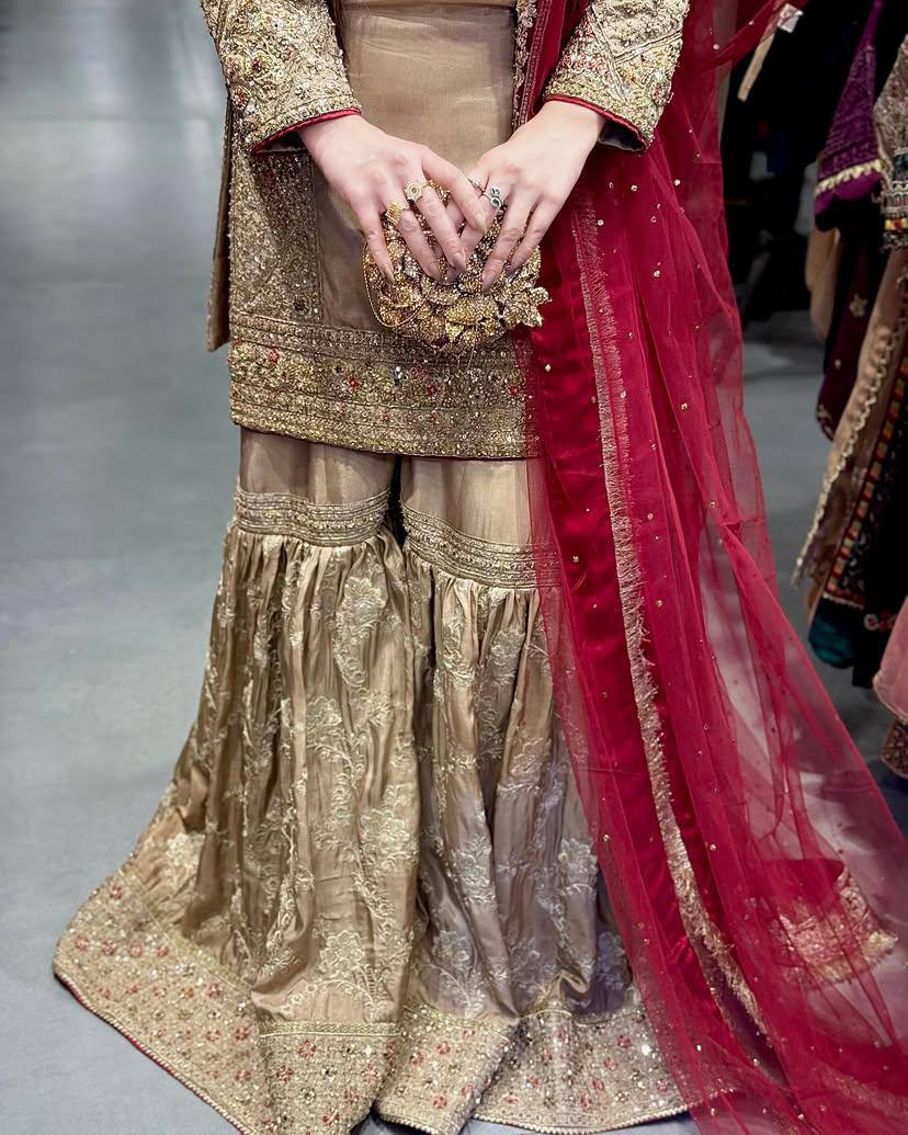 NEUES KURTI-SHARARA-SET AUS CHINON-SEIDE MIT WUNDERSCHÖNEN PAILLETTEN UND FADENSTICKEREI