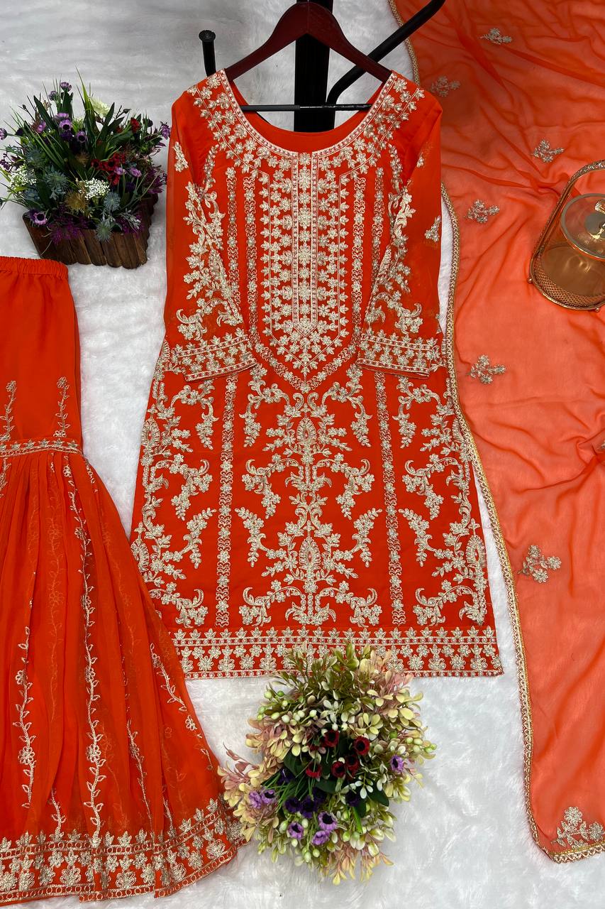 *3 PIECE KURTI WITH SHARARA AND DUPATTA*