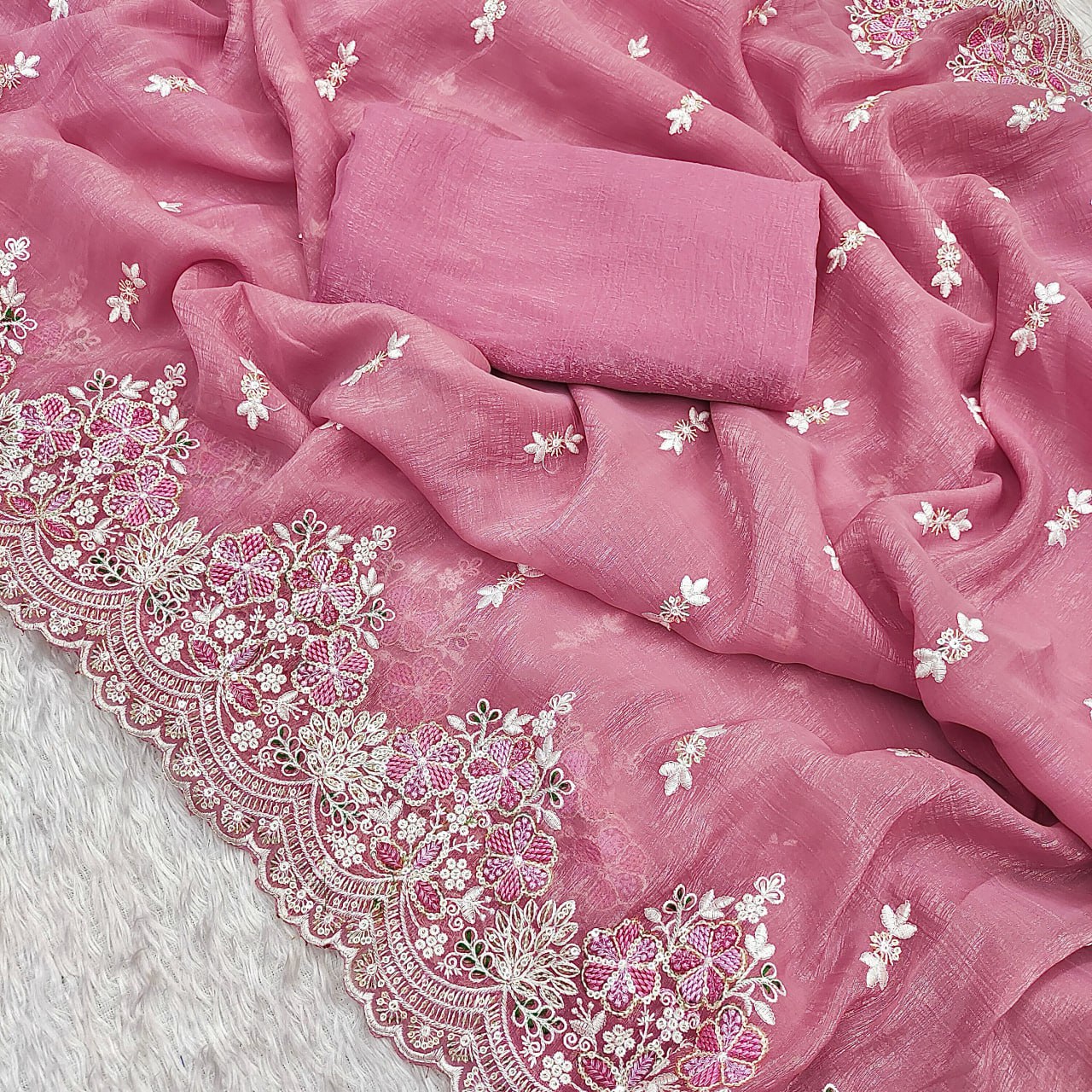 Premium Crunchy Heavy Embroidery Threads & Sequins Work Saree