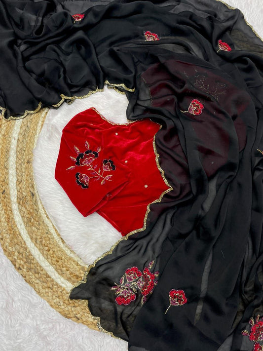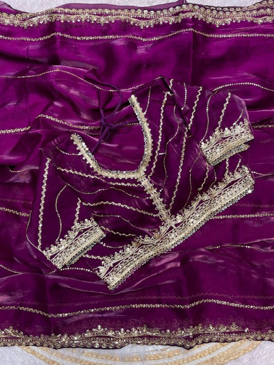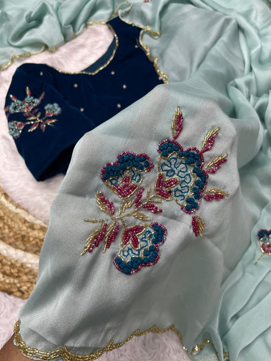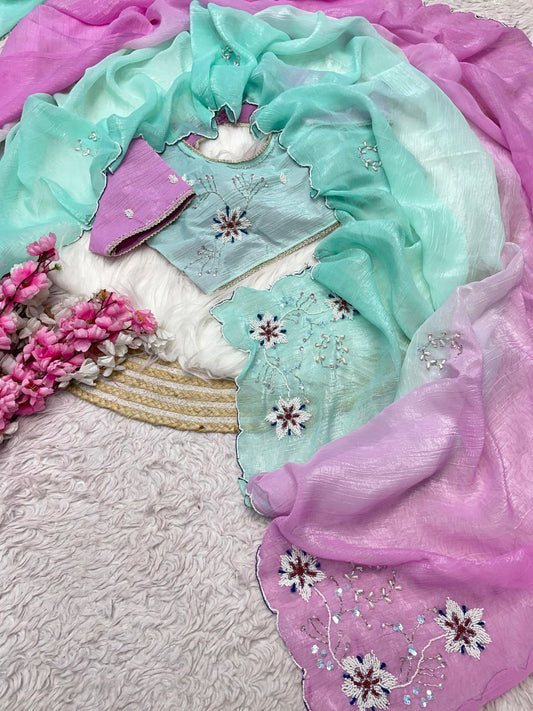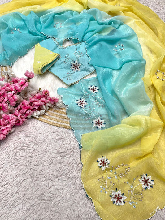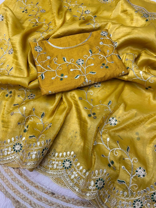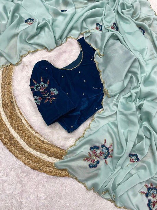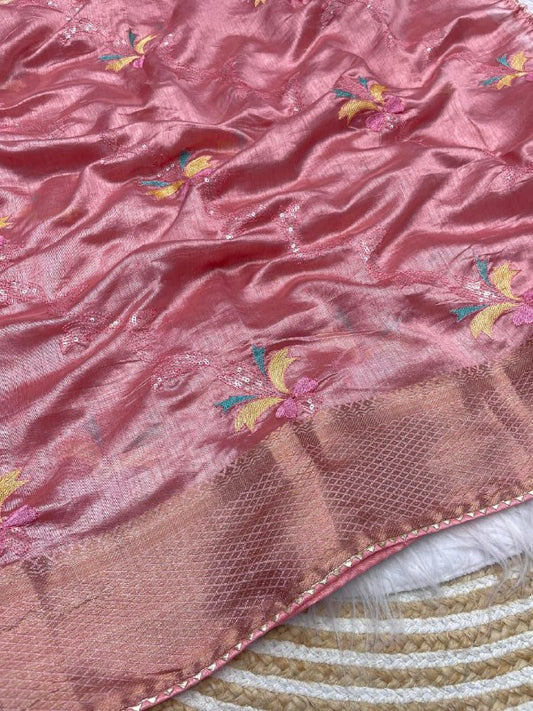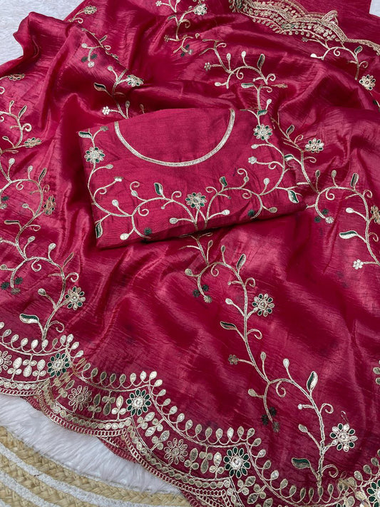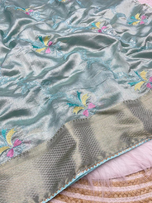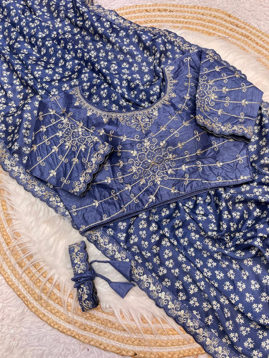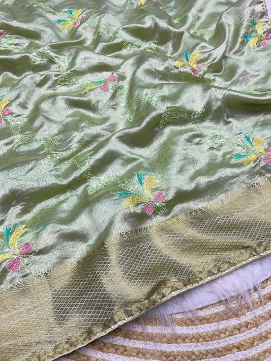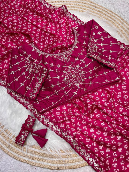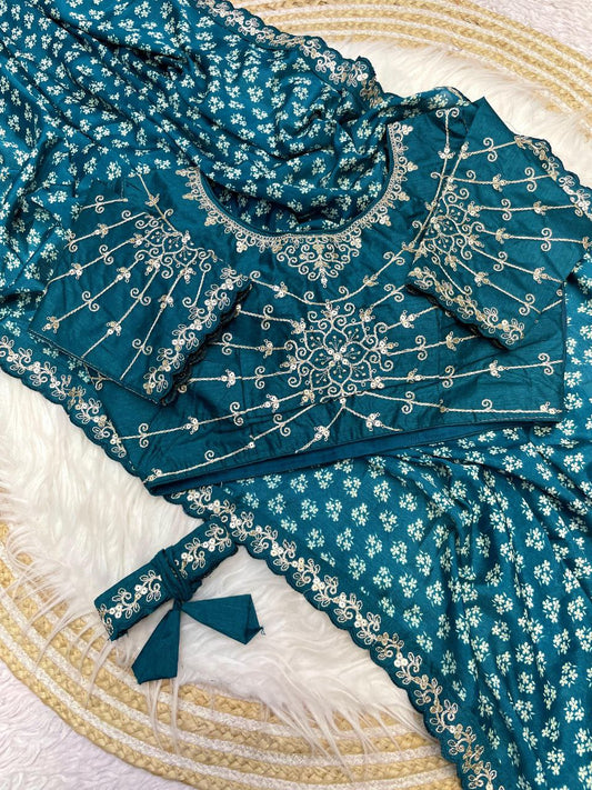 Sari brodé en pure soie Rangoli avec codage 3 mm c pallu