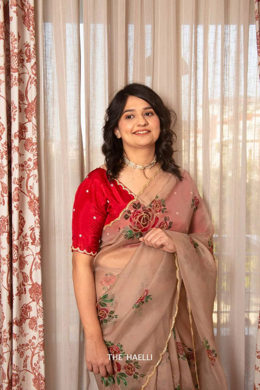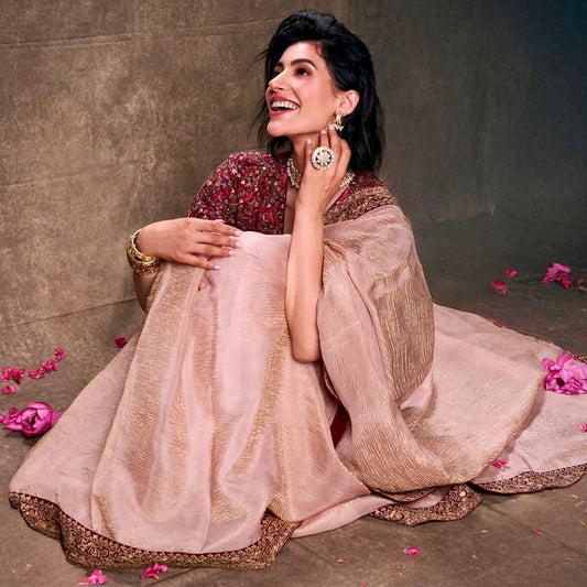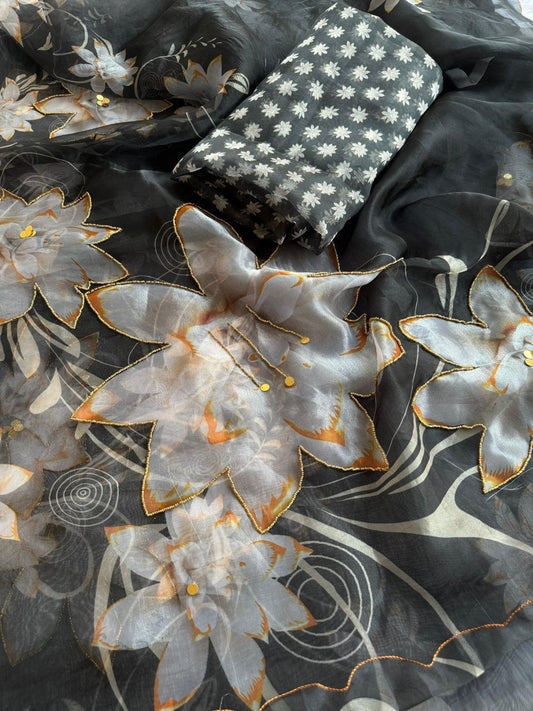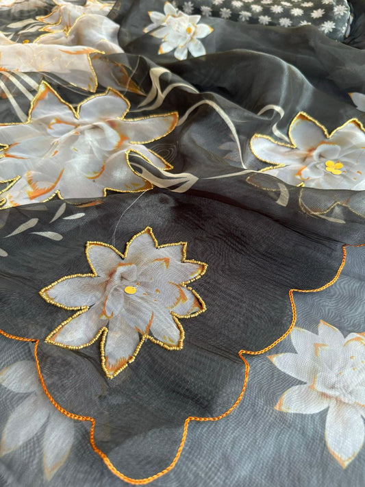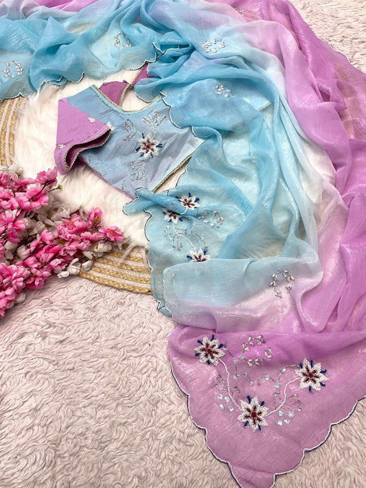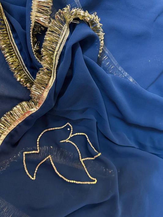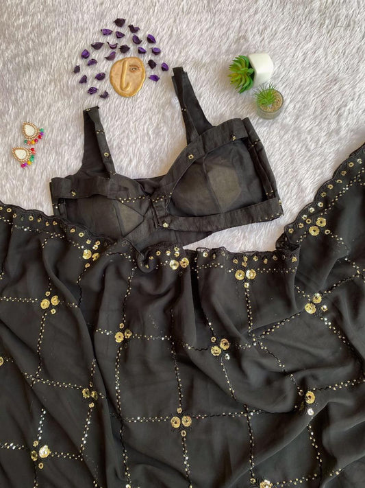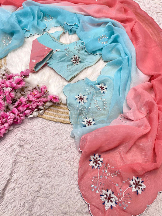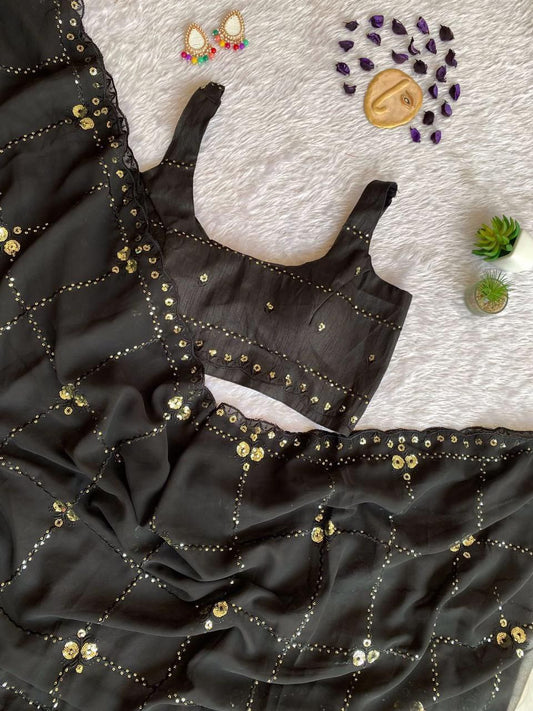Sari en georgette avec un travail de zari sur toute la surface et un sari multi-broderie