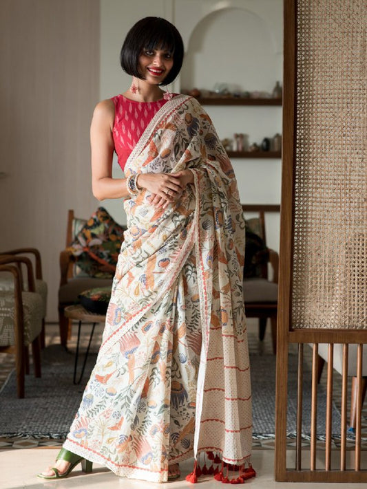Sari brodé en pure soie Rangoli avec codage 3 mm c pallu