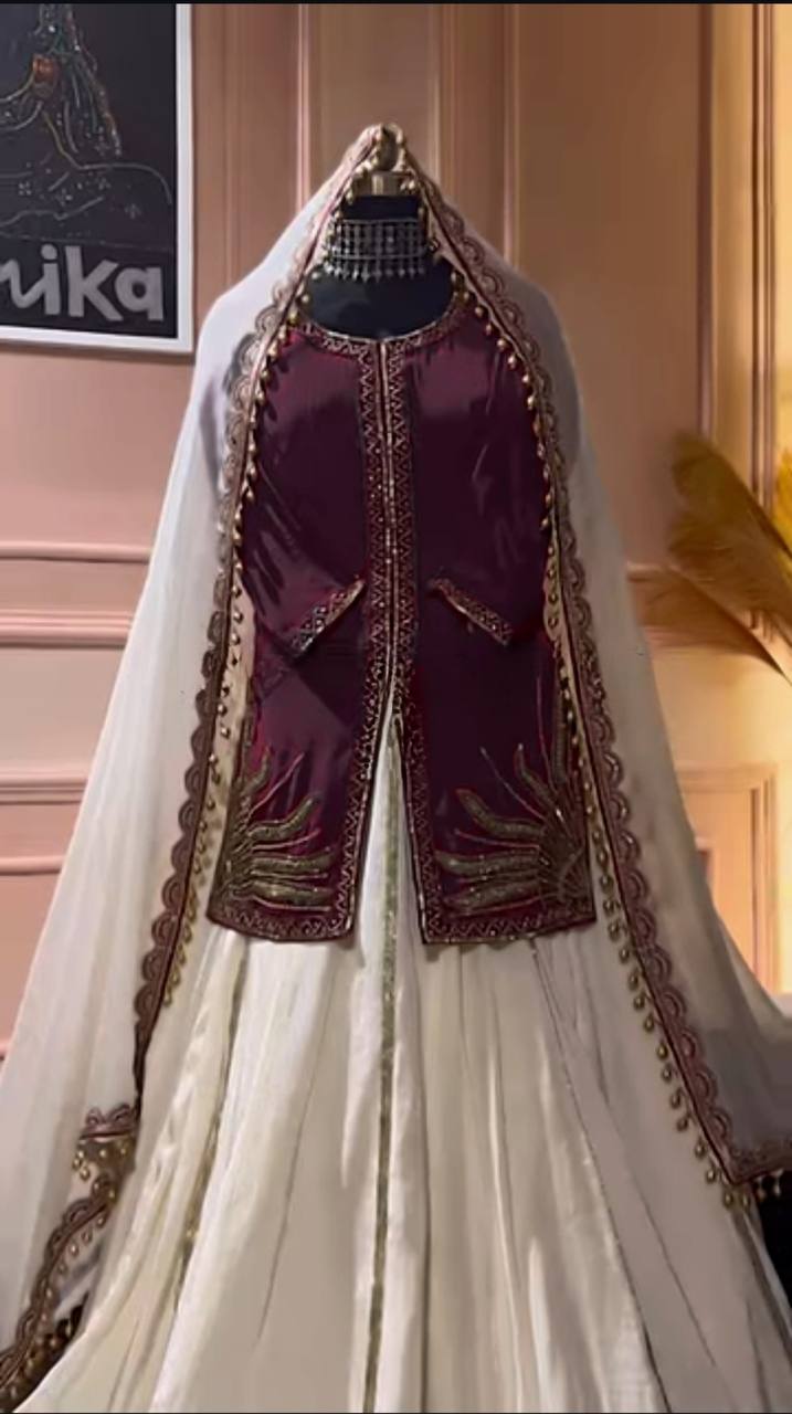 COSTUME DE TRAVAIL EN SOIE VICHITRA LOURDE À SÉQUENCES DE BRODERIE
