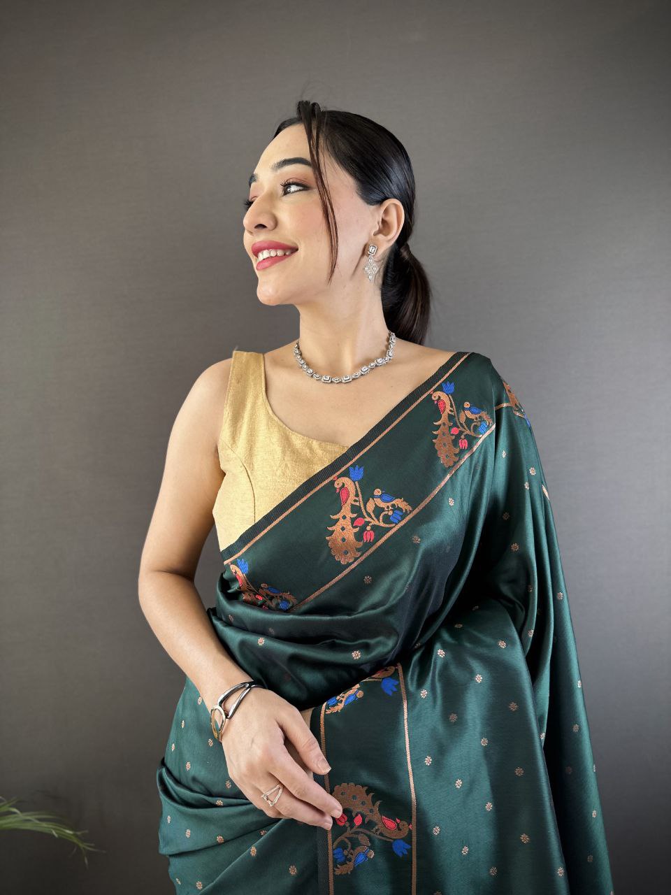 Vous recherchez quelqu'un pour ce magnifique sari de créateur de la même couleur