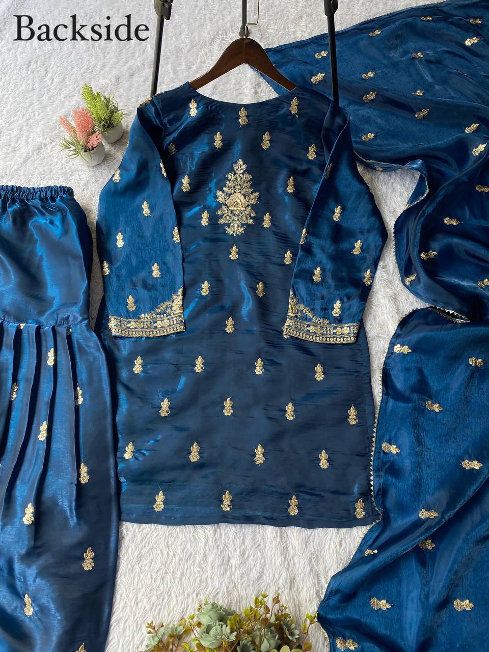 EXCLUSIVE AND TRENDY FOR WEDDING SEASON OUR CORDING WITH SEQUENCE EMBROIDERY WORKED TOP, PLAZZO AND DUPATTA IN GMY CHOU _