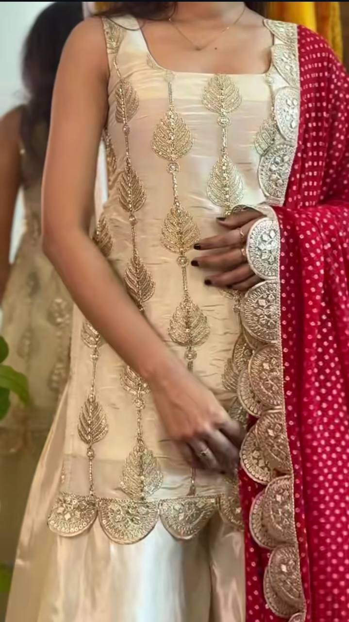 *Plazzo fabric* :Natural Crep silk *(FullyStitched)*