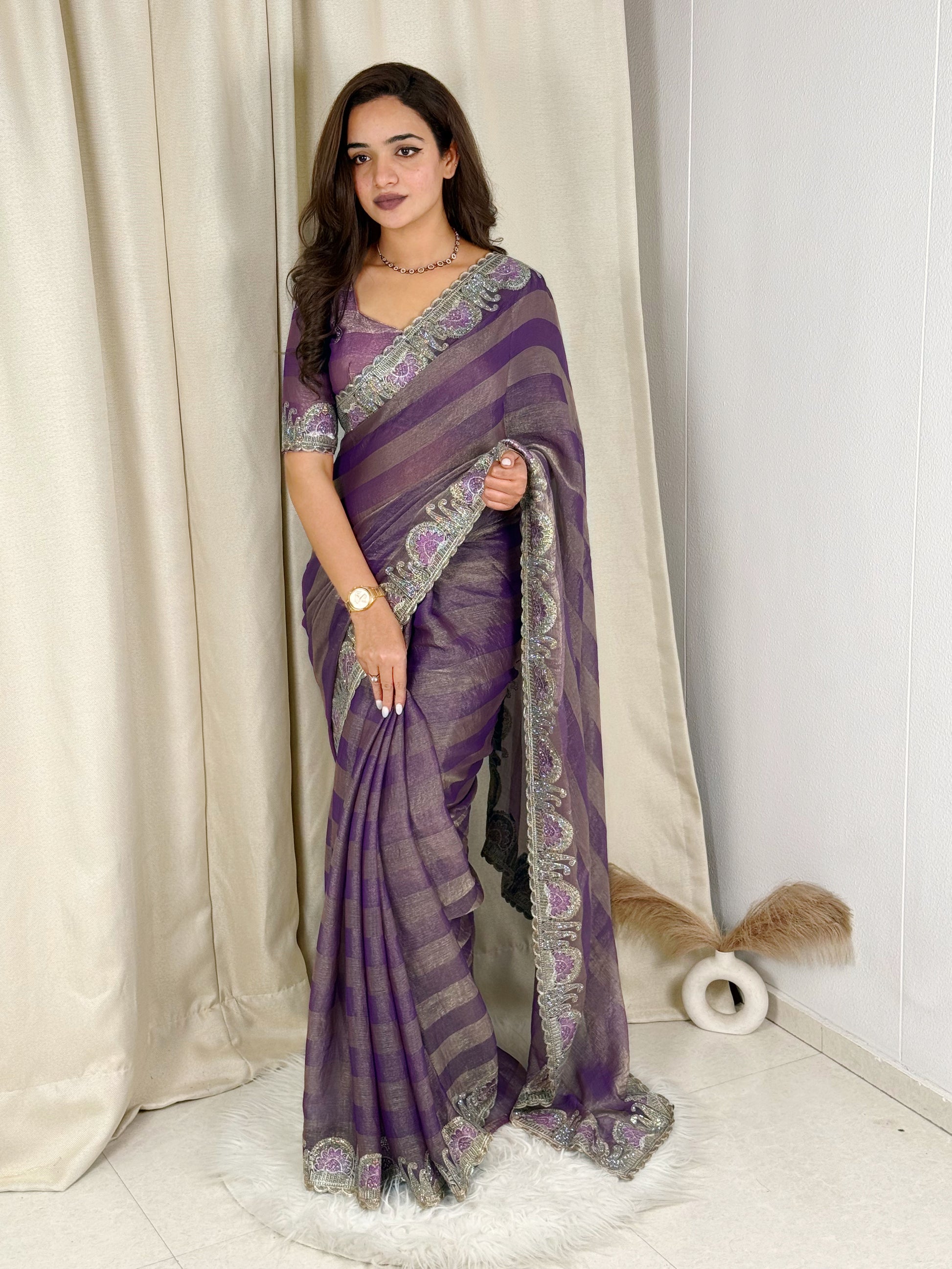 *This fandy chiffon saree, adorned with intricate zari embroidered with hand savroski work, is a dreamy blend of grace, luxury, and timeless charm*