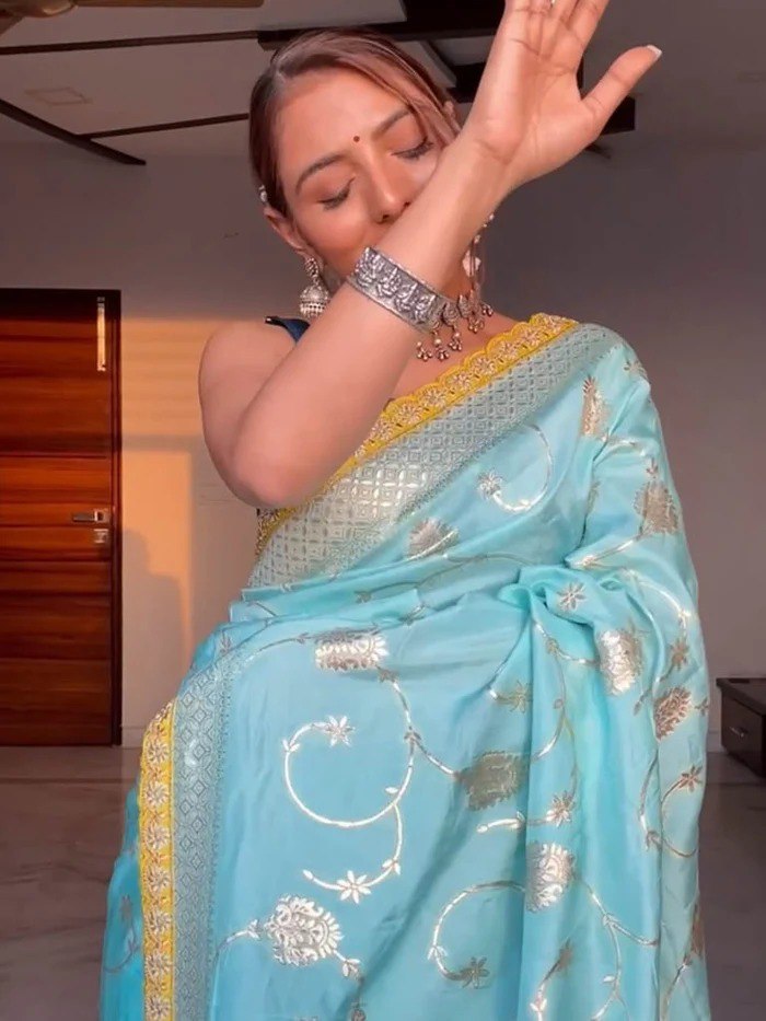 Beautiful Zari work With Coding Sequance Lace Border Saree