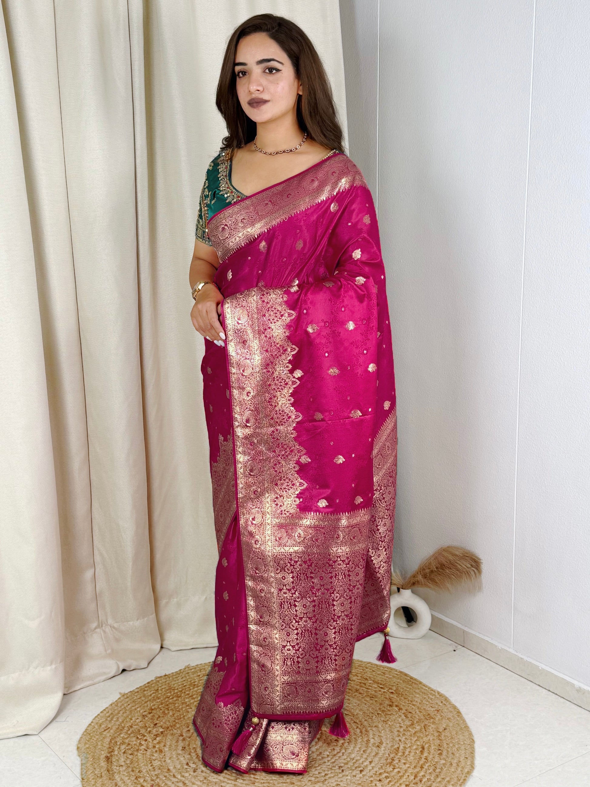 Designer Handwork blouse with this heavy Banarasi satin silk saree