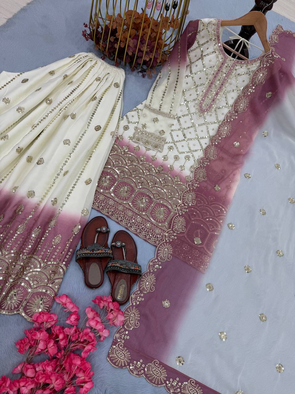 *Launching New 🦋 Đěsigner Party Wear Look Pur Heavy Dual Tone Peding Star Georgette Top Plazzo & Dupatta Set*👗