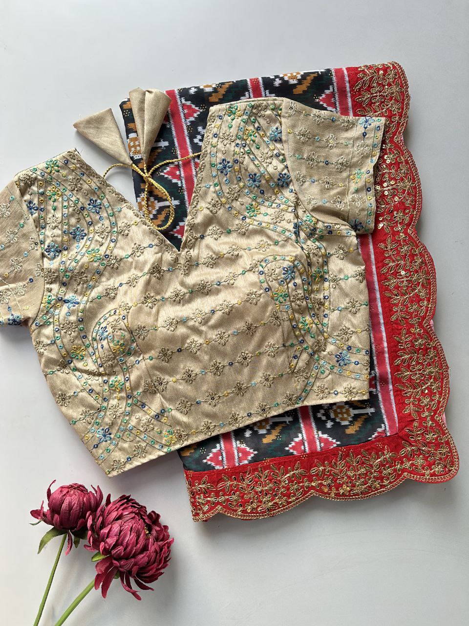 Beautiful mono silk blouse with heavy embroidery front & back 5mm sequins & Thread multy work with embroidery sleeves