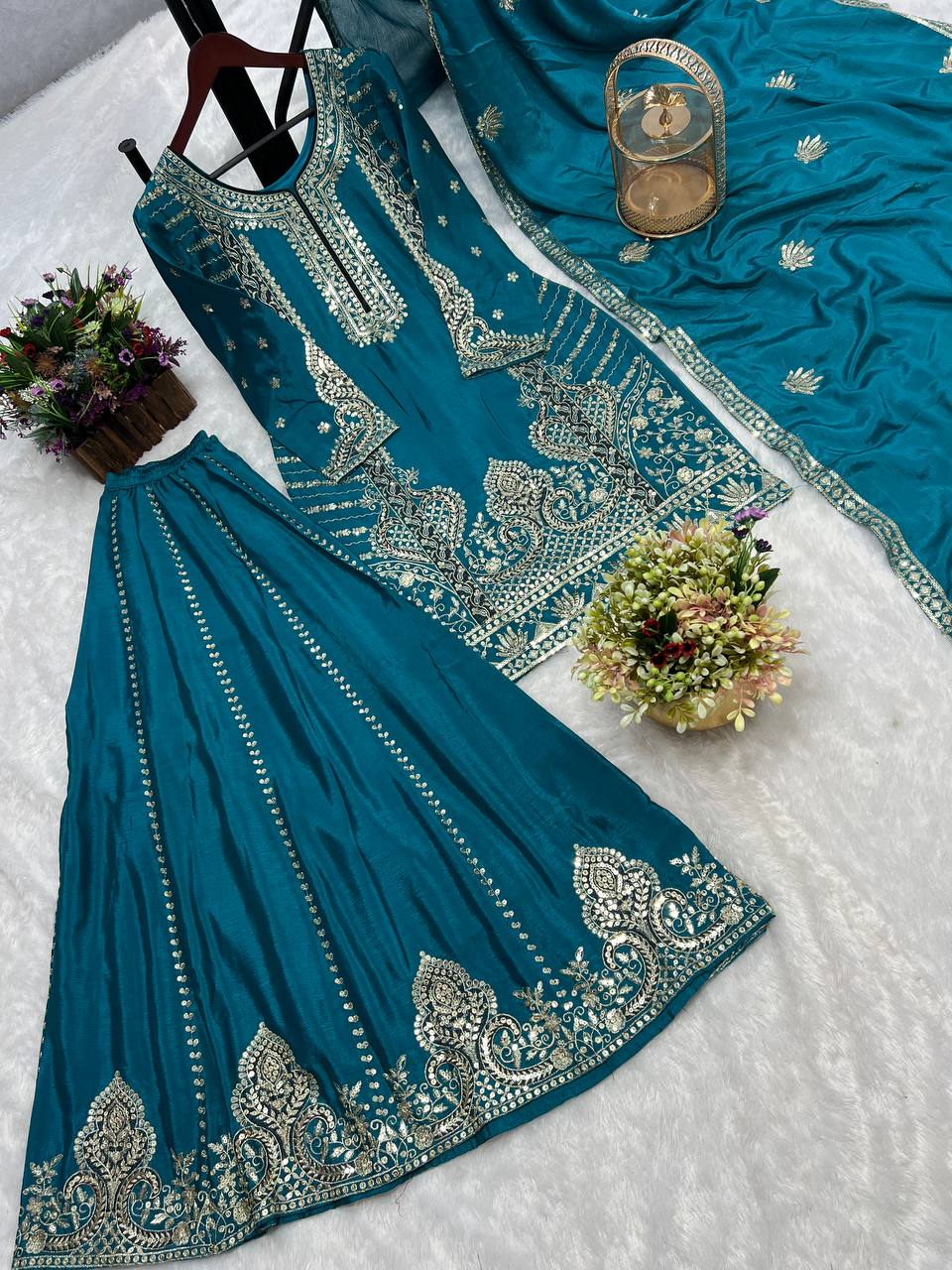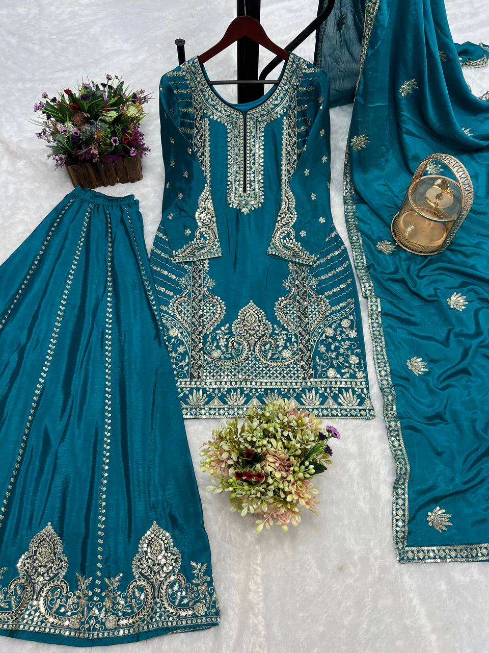 NEW TRDITIONAL COLLECTION 3 PIECE FANCY KURTI WITH PLAZZO