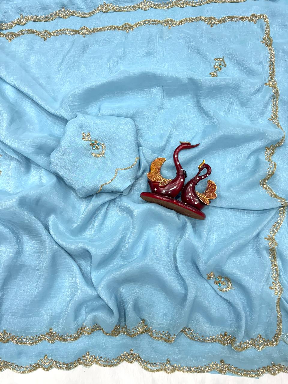 Pixcel Crush Beautiful Katdana and Diamond hand work Saree