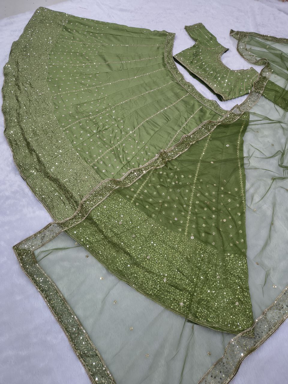 Lehenga : *Premium Vichitra Silk Lehenga Embellished With Beautiful Embroidery Work With Jari Work And Heavy Sequins Work With Heavy Cancan A With Inner Covering With 3.5 Mtr Flair*( Semi Stitched. )