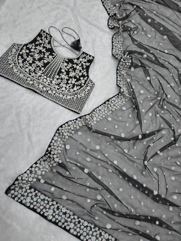 Blouse : *Premium Butterfly Soft Net Embellished With Beautiful Embroidery, Sequins Work With Hand Pearl Work*( Unstiched )