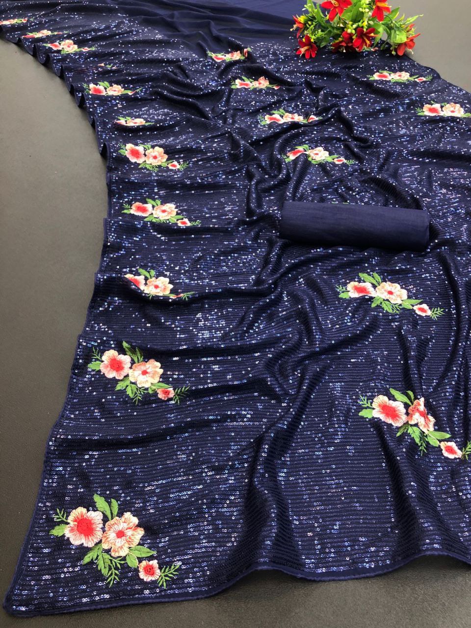 Saree : *Premium Georgette Embellished With Beautiful Sequins Work And Beautiful Multi Thread Embroidery Work*