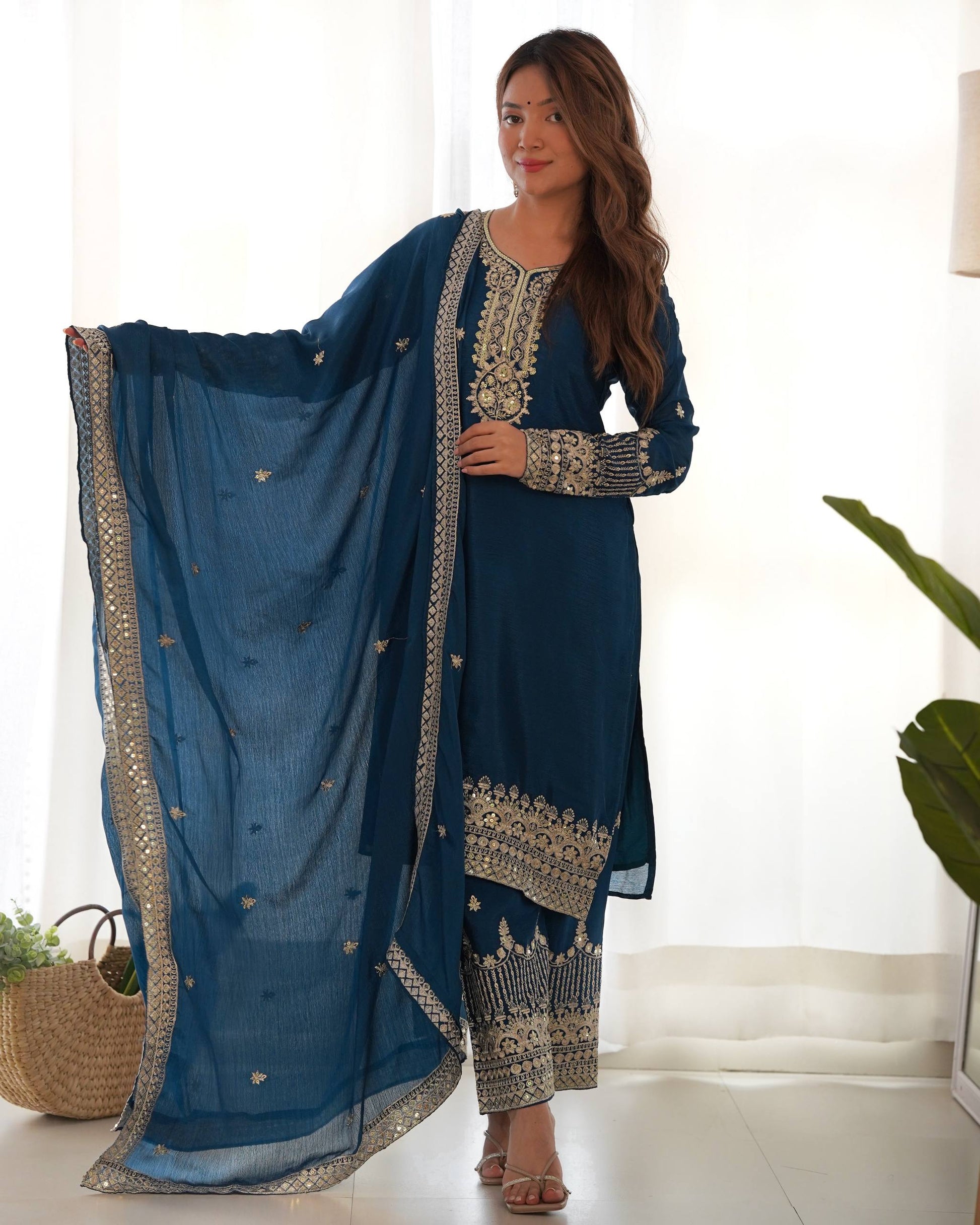 *PRESENTING NEW BEAUTIFUL PURE CHINON SILK FABRIC STRAIGHT FIT KURTA WITH DUPPTA SET,TROUSERS,READY TO WEAR*