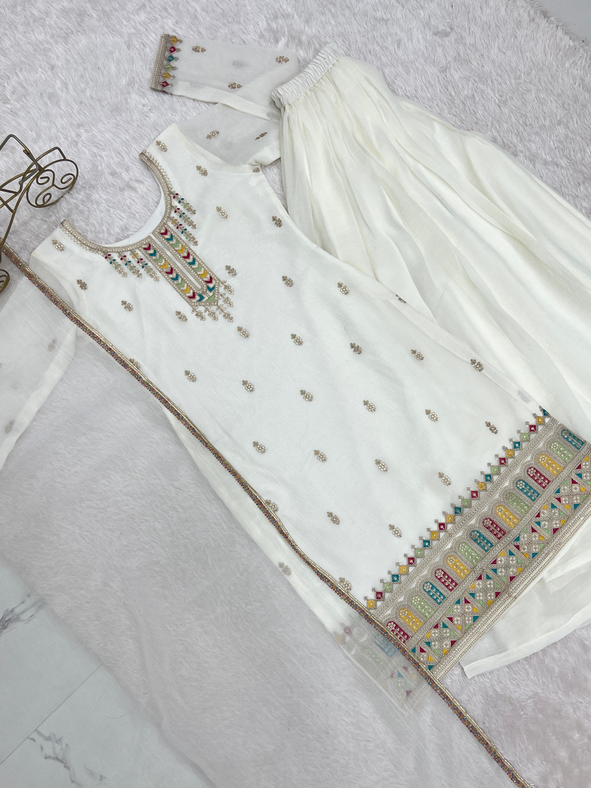*TOPKURTA FABRIC*:👗HEAVY PURE SOFT CRUNCHY SILK FABRIC WITH FANCY EMBROIDERY SEQUENCE,DORI,THREAD AND JARI WORK