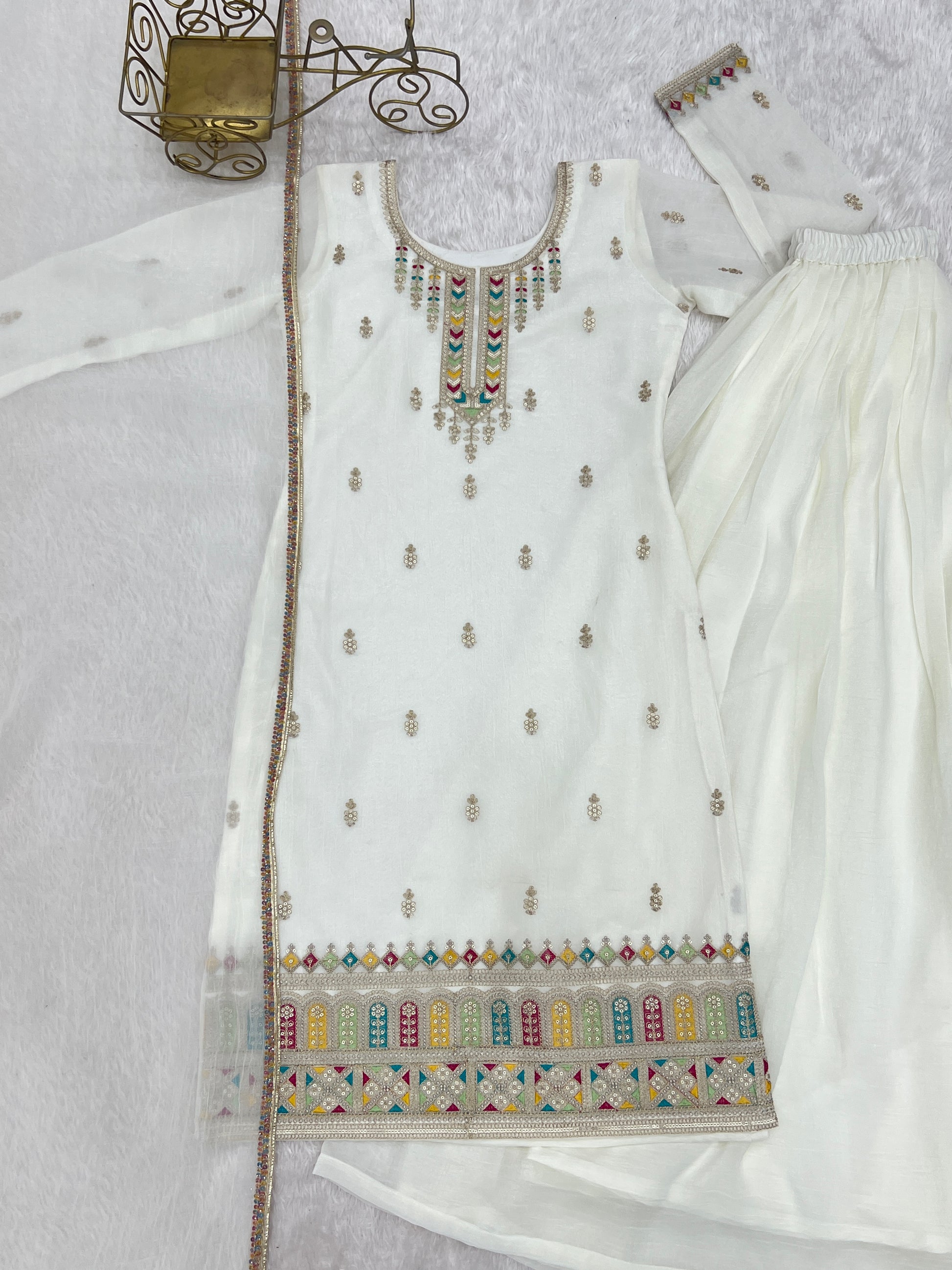 *PURE SOFT CRUNCHY SILK FABRIC TOP,SHARARA WITH DUPATTA SET READY TO WEAR*