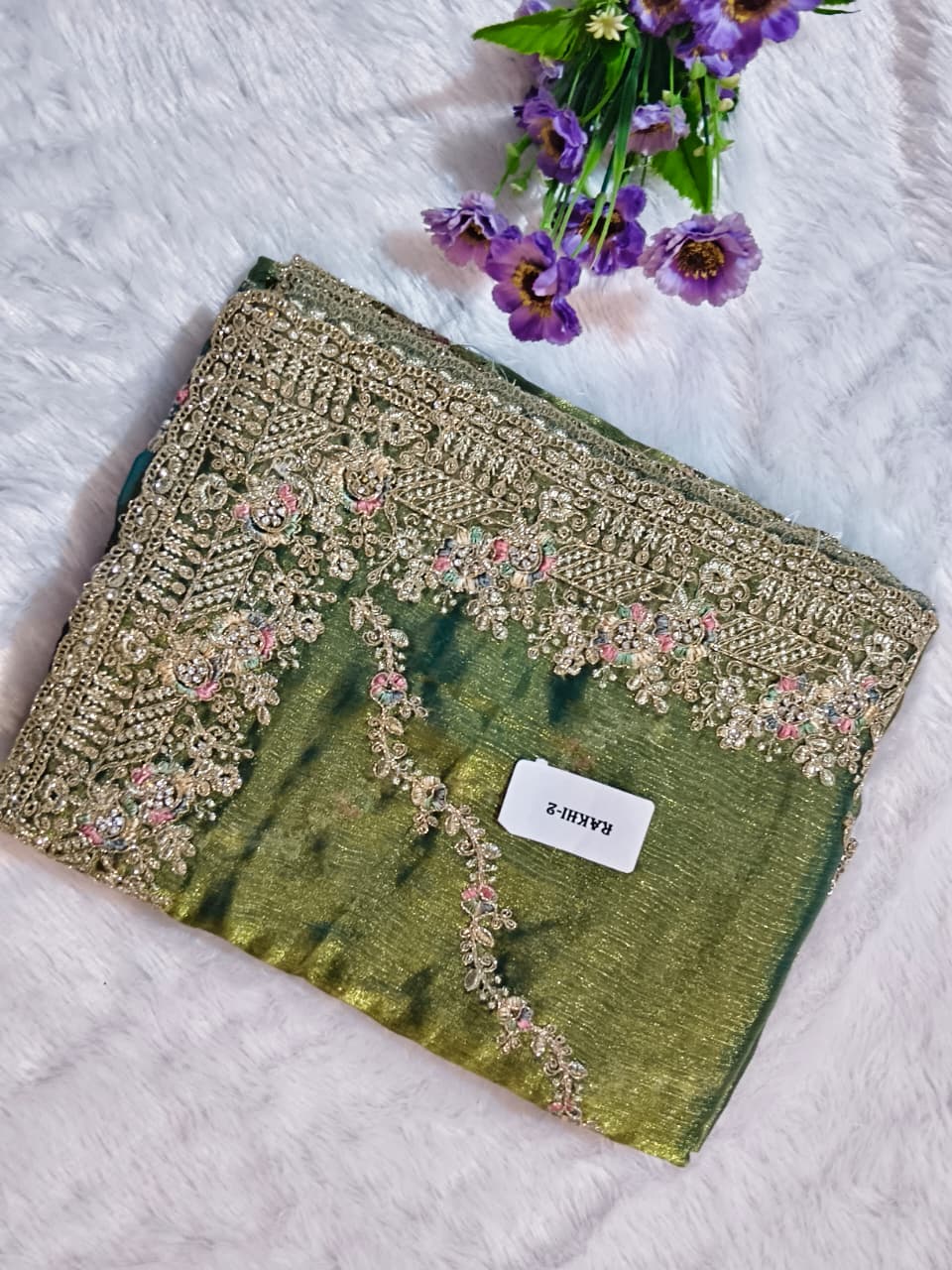 Royal Green GMY Silk Saree with Heavy Jari & Jarkhan Diamond Work