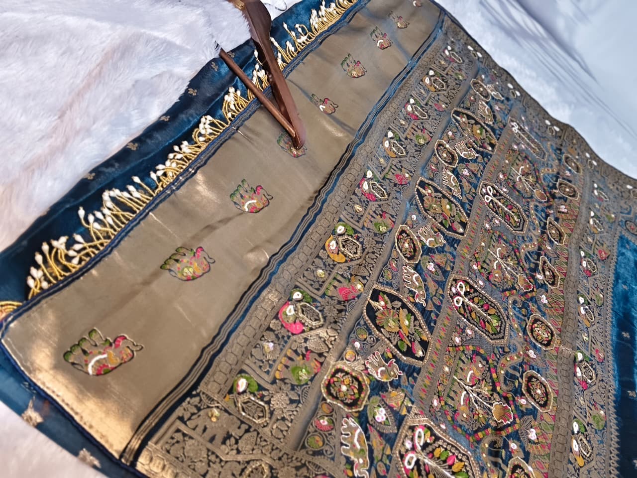 Royal Pure Silk Saree with Heavy C-Pallu Mirror & Moti Work