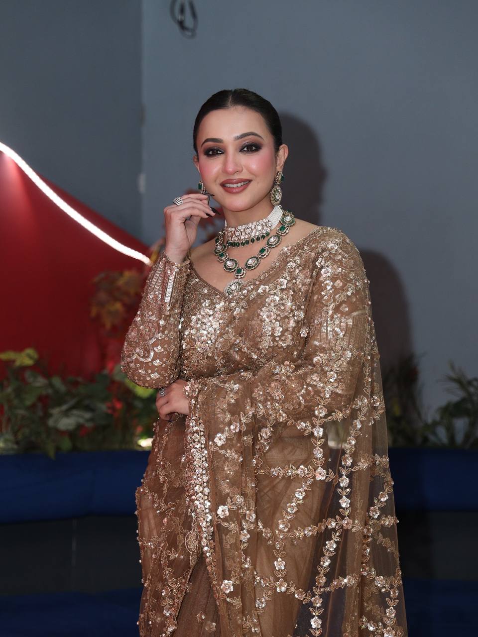 Soft net Beautiful sequins and Zari Embroidery Work saree